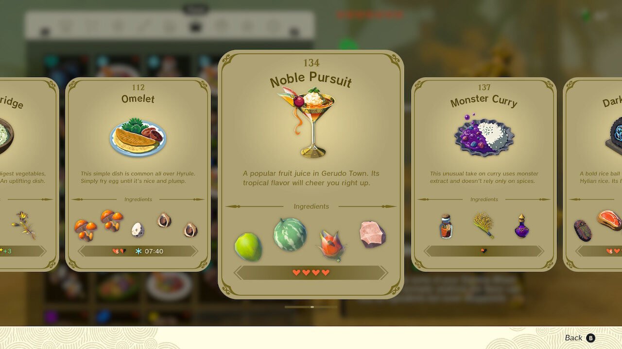 But knowing the effects you like most means you can watch for those special ingredients that make Link’s life easier and tastier– Endura Carrots, Hearty Truffles, Gourmet Meat.