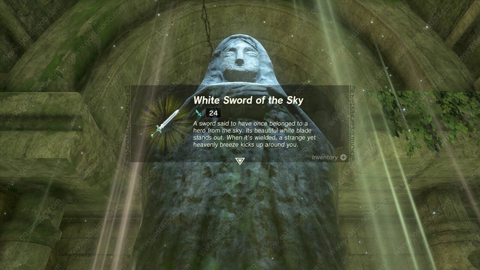 The White Sword of the Sky isn’t exceptionally powerful or useful. It’s basically just a reskin of a Royal Guard’s Sword, but it’s a stylish reskin. It’s not quite worth going through the hassle of offering three Dragon Claws to three shrines during the “The Mother Goddess Statue” side quest, but it’s one of a kind and makes for a great mantlepiece.