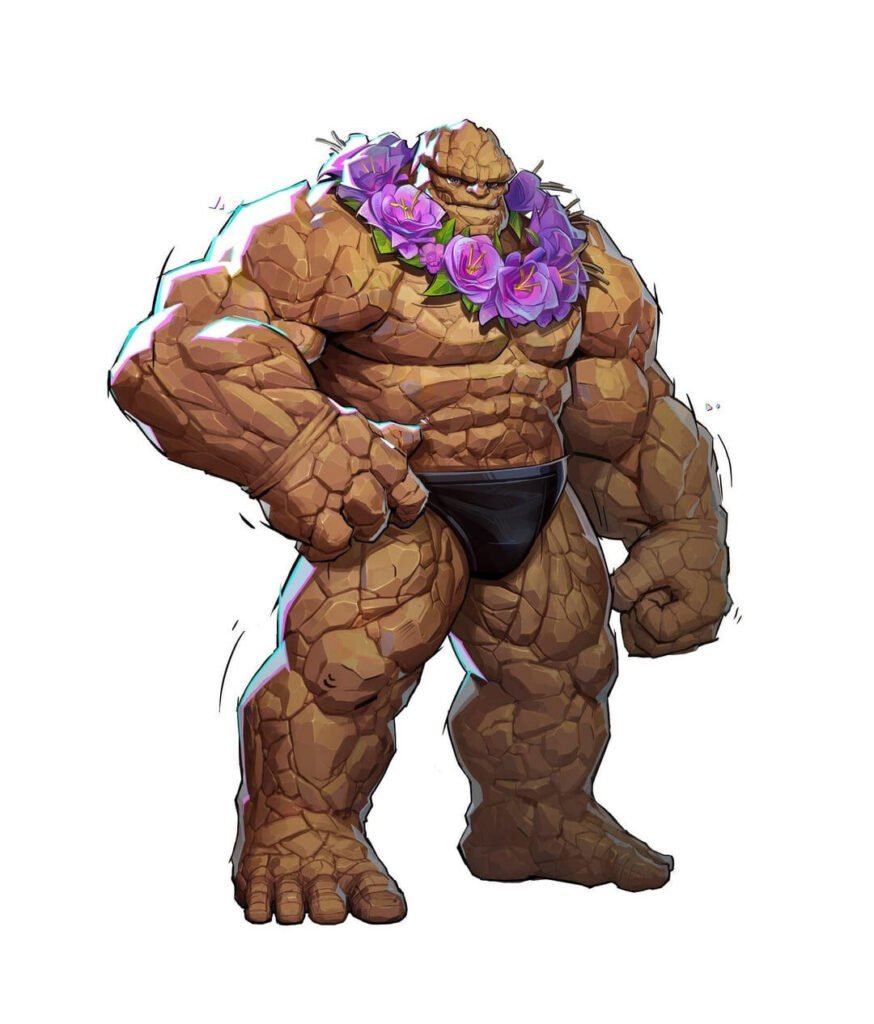 The now-iconic “Sunshine Thing” skin was first teased in Marvel Rivals: Infinity Comic, a digital tie-in series expanding the game’s lore and characters. One panel in particular caught fire with fans: The Thing lounging in a skimpy swimsuit on a beach. Dubbed “The Thong” by the Marvel Rivals community, the image went instantly viral—equal parts joke, thirst trap, and wishful thinking.