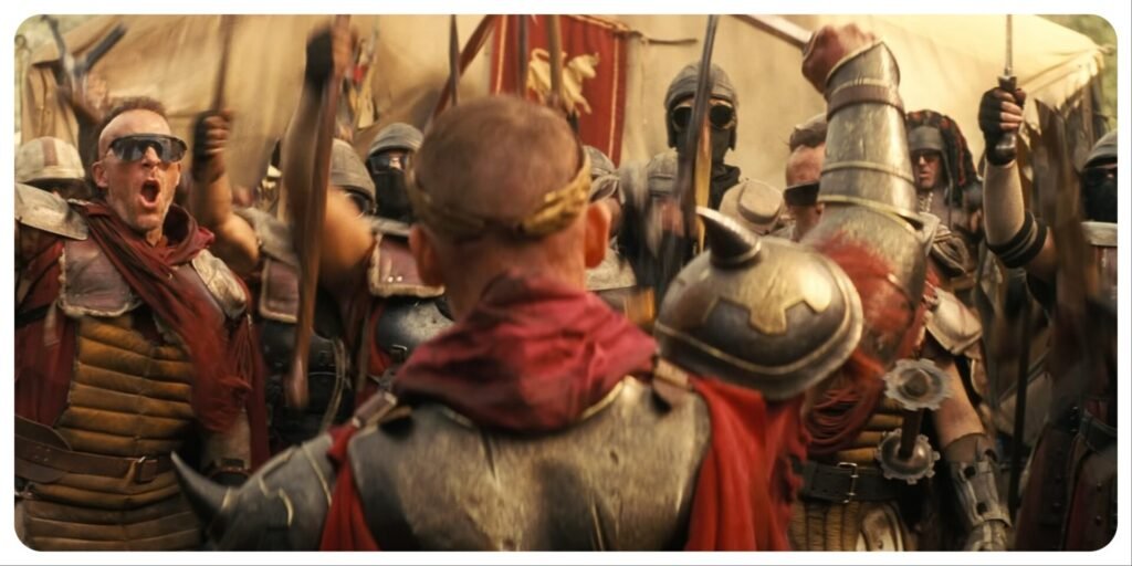 Culkin has been confirmed to be in season 2 of Fallout as a “a crazy genius-type character“. That doesn’t tell us much, but Culkin looks suspiciously like this Legate the legion troops are cheering for. Check out the impressive sleuthing done by sharp-eyed redditor Benados: