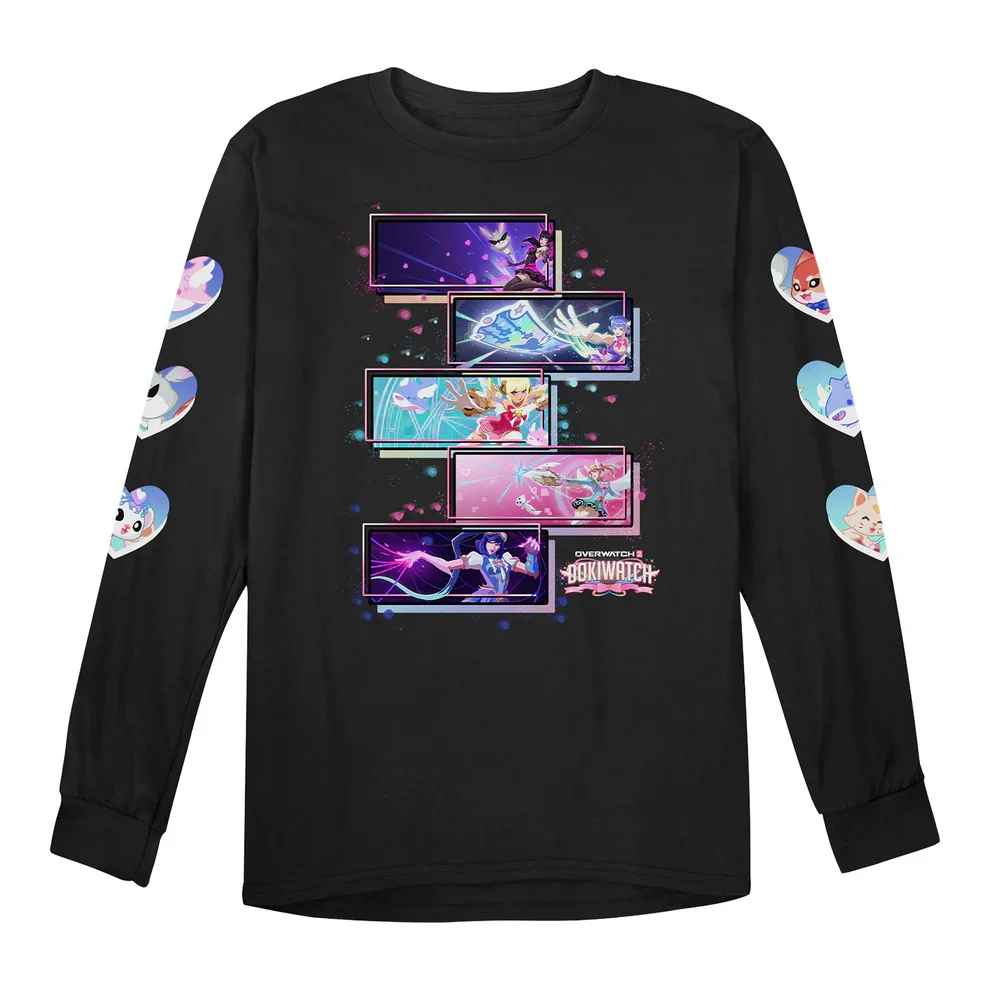 Furthermore, the print for the long sleeve completely cuts out Brigitte as one of the Dokiwatch heroes since it uses the in-game name card graphics. On the other hand, the hoodie, which features the heart-shaped splash art, is missing D.Va as part of the group, as she was not included in this artwork. Seems like fans who were hoping for some merch that shows off all of the Dokiwatch girls together are out of luck this time.