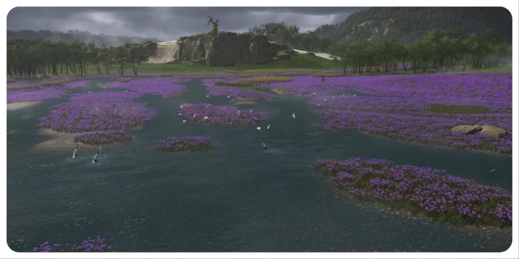 Where: West of Atsu’s Home along the Shikotsu River. Look for purple lilacs near a rock formation.