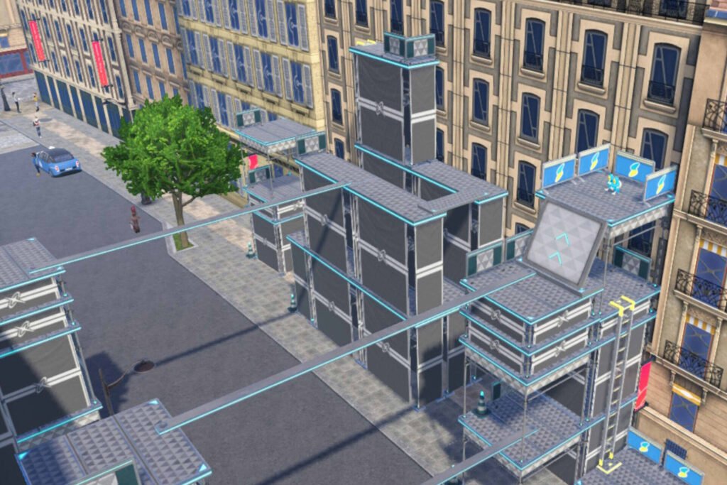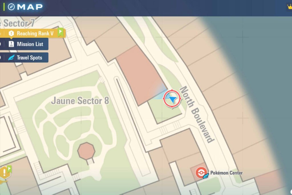 The third scaffolding course is set up in the Rouge District, on North Boulevard, not far from the Pokemon Center. To get there as quickly as possible, it’s easiest to just fast-travel to the Pokemon Center itself and then run over. The exact map location has been pinpointed below.