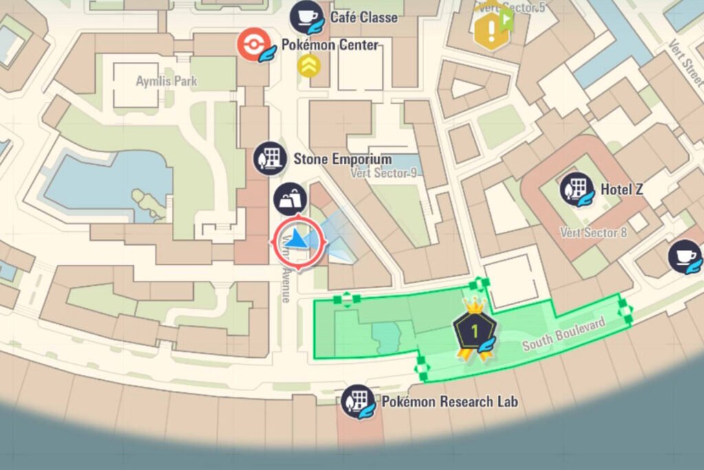 The fastest way to reach her is to fast travel to the Pokemon Center and then run over to her exact location, which has been referenced in the map screenshot below.