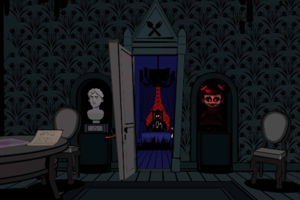 I’ve already mentioned the art more than once throughout this review, but Riddlewood Manor truly nails that ‘simple, yet stunning’ approach. The 2D, hand-drawn art is bold and distinctive, perfectly mixing dark horror tones with pops of vibrant color accents that make every single scene and room stand out. The heavy black linework and varying line weights in each illustrated prop, object, or character give a fun sense of stylization, making you feel like you are truly stepping into a twisted storybook.
