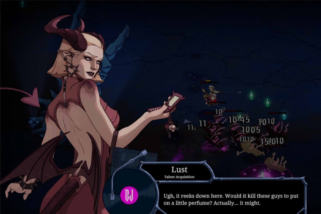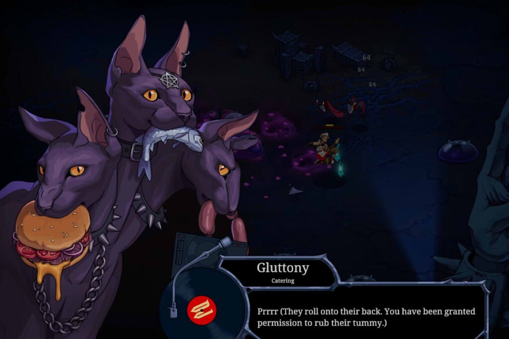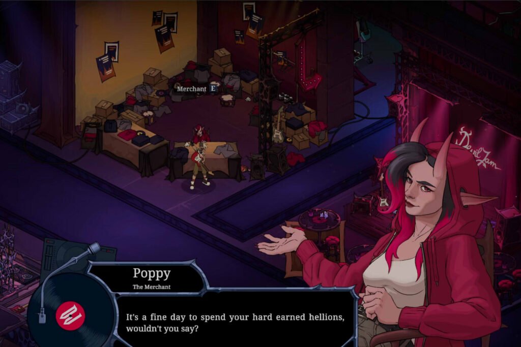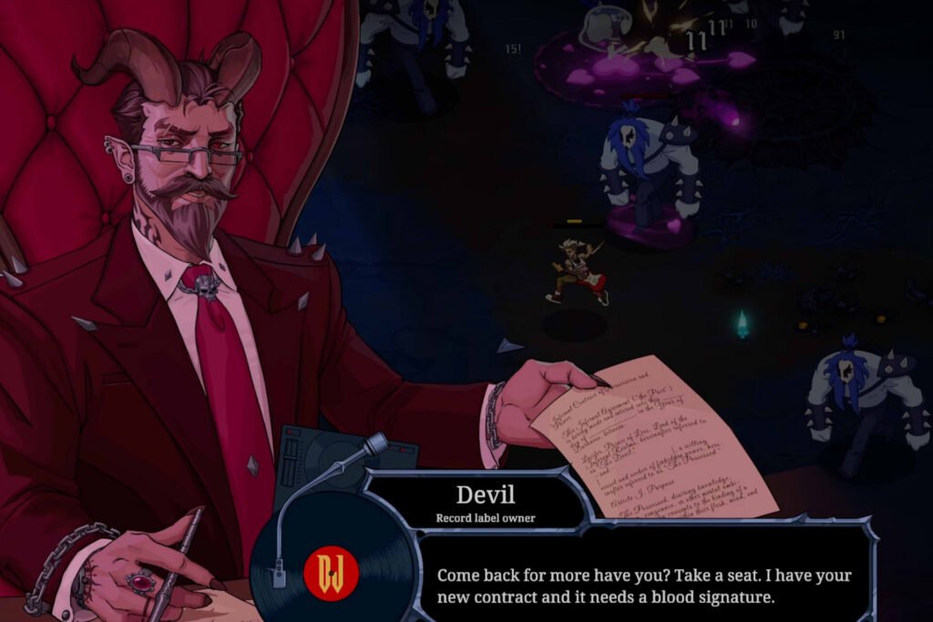 In terms of a story… There doesn’t appear to be all that much of one? After learning gameplay basics in a tutorial, you’re pretty much thrown right in the deep end by getting your first look at the quest board and then heading out. Apparently, according to the game description on Steam, you’ve signed a cursed contract with the devil, and you now find yourself in the underworld for a concert. However, you never really get this context upon playing for the first time.