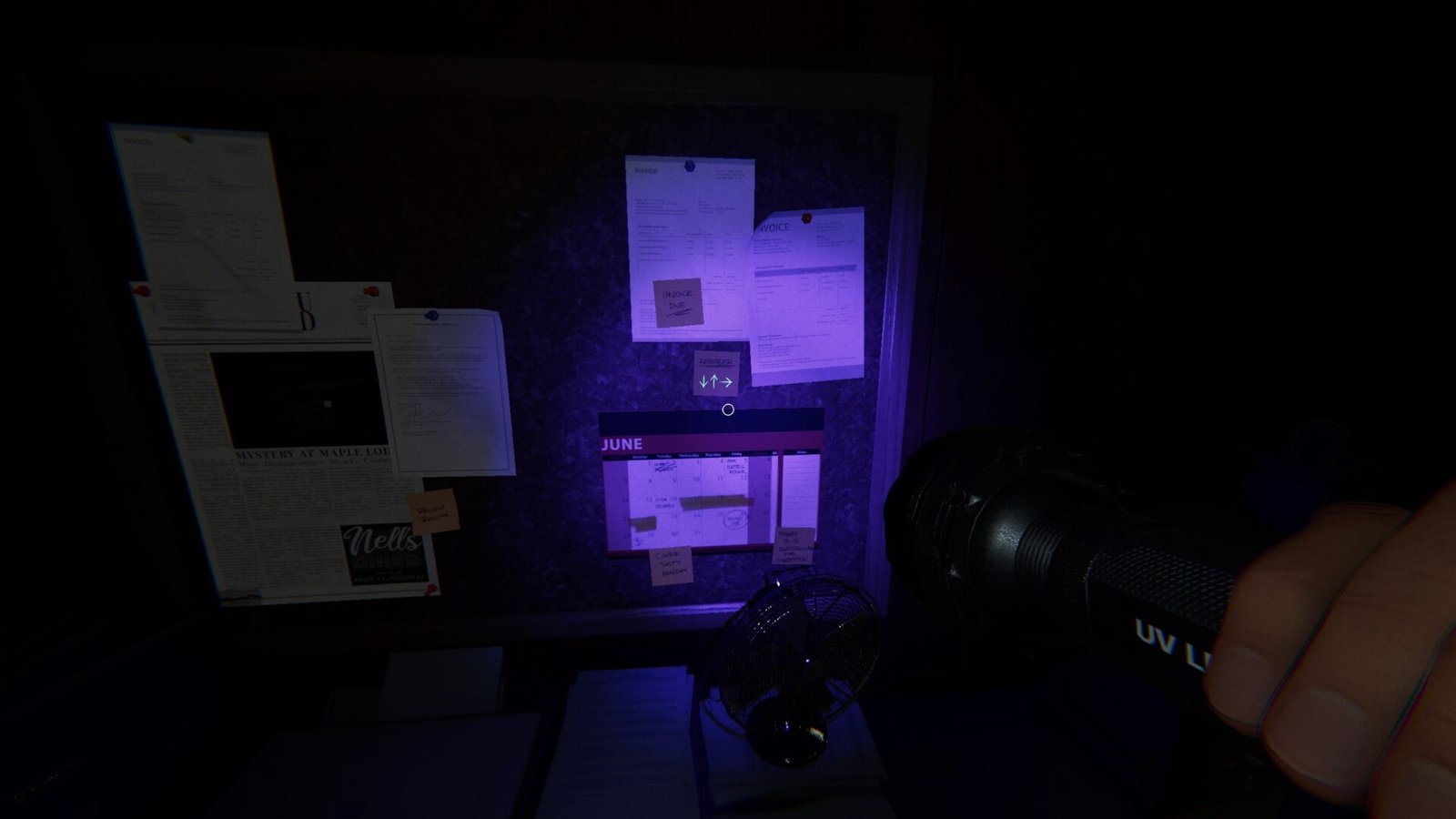 The Easter egg begins with a sticky note in the manager’s office. By shining a UV light on it, you’ll discover a secret code: three arrows, pointing down, up, and right.
