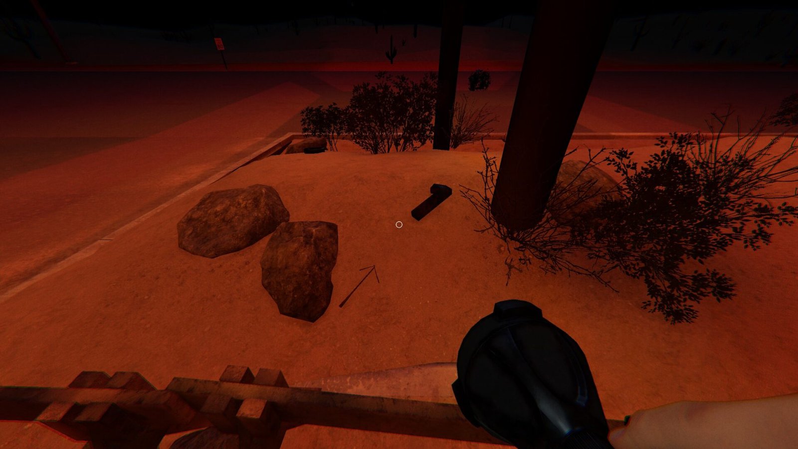 - The second arrow is scrawled in the sand below the neon sign outside, pointing toward a 1.