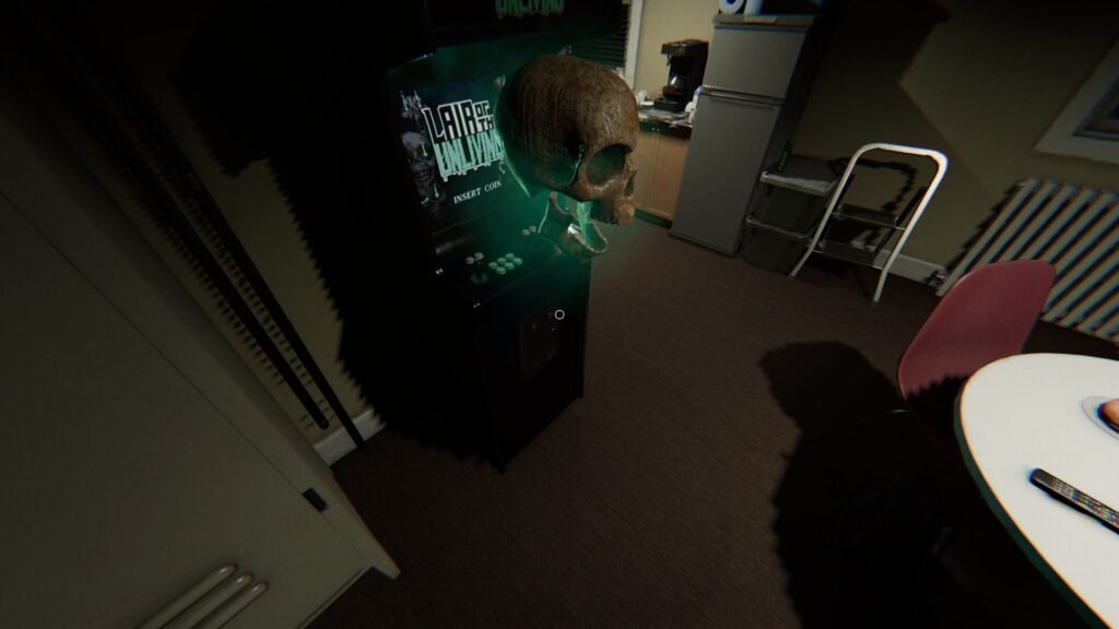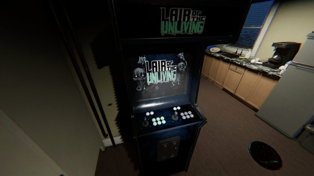 Take the quarter to the employee break room in the back of the building. Activate the arcade cabinet (Lair of the Unliving) and use the “place down” button to insert the coin into the slot on the bottom section of the machine.