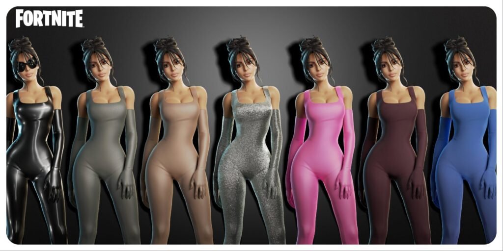 Fortnite has added pop stars, superheroes, horror icons, and every meme-adjacent figure under the sun, so the Kim Kardashian crossover feels like destiny. The leaked skins show Kim in a parade of Skims bodysuits. You’ll be able to dress up your Kiki in latex black, glitter silver, soft neutrals, the classic chic hot pink.