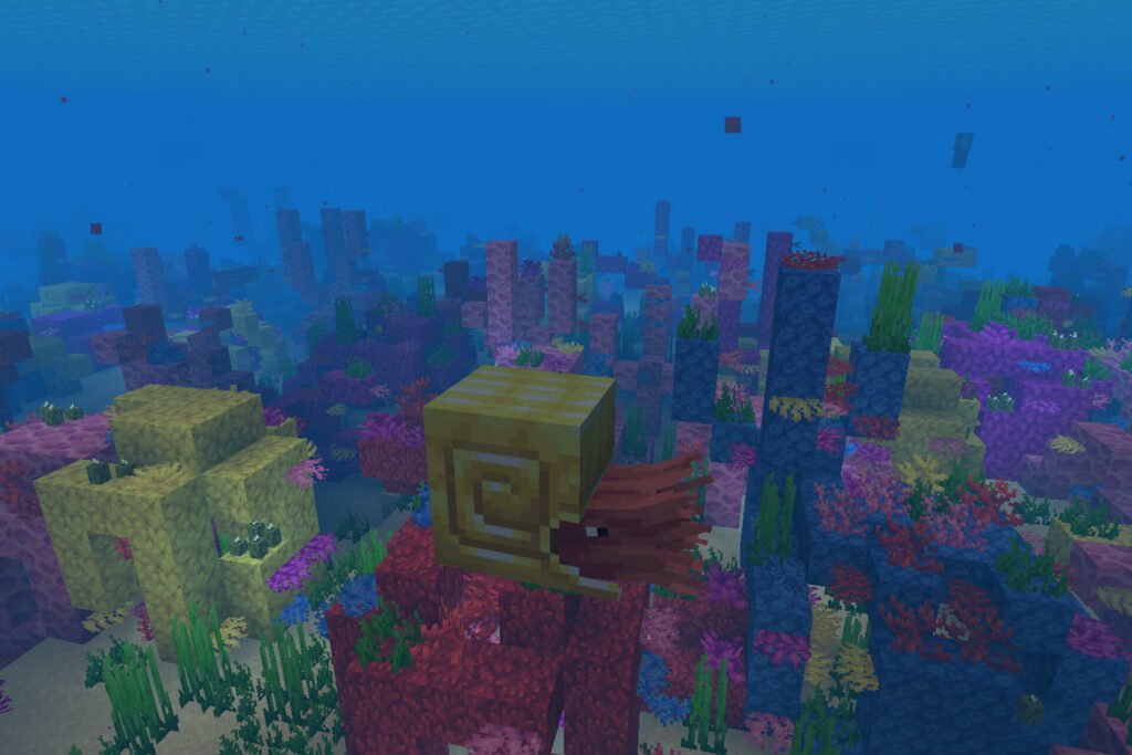 The Nautilus is a neutral aquatic mob that players can tame, which spawns across all ocean biomes. It can also be equipped with a Saddle and Armor, bred among other Nautiluses, and ridden by the player, which is an entirely new feature, especially with ocean creatures.
