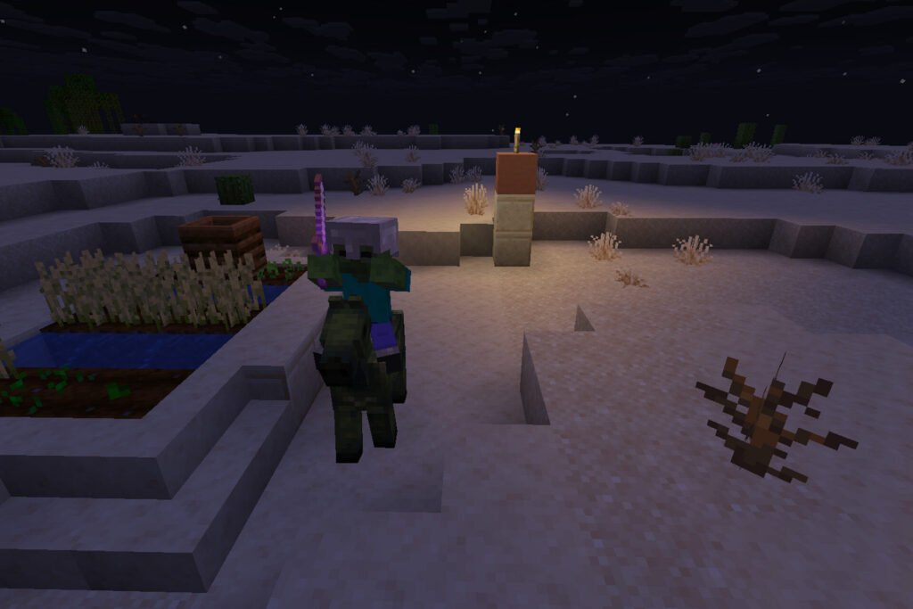 Besides that, Zombies, Husks, Piglins, and Zombified Piglins are mobs capable of spawning with the Spear in hand.