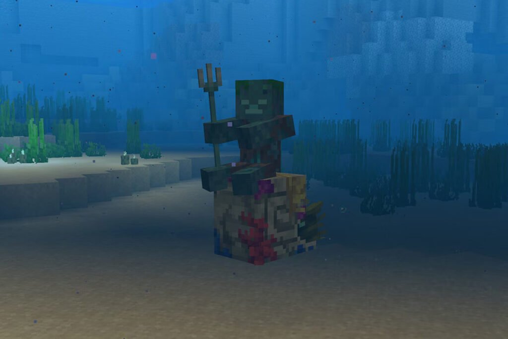 In terms of the Zombie Nautilus, this spawns with a Drowned rider holding a Trident. The Zombie Nautilus, however, is only hostile if it’s ridden by a hostile mob such as the player.