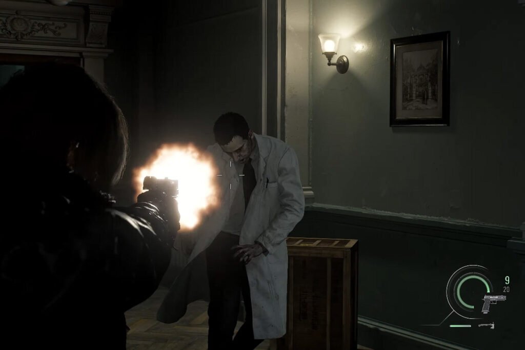Afterwards, the trailer flashes to a police crime scene, hinting at an agent to be tapped to help with the case. Leon then finally makes his entrance by saving Grace from an attack, showing his signature shooting and fighting skills against the different monsters and creatures in the game.