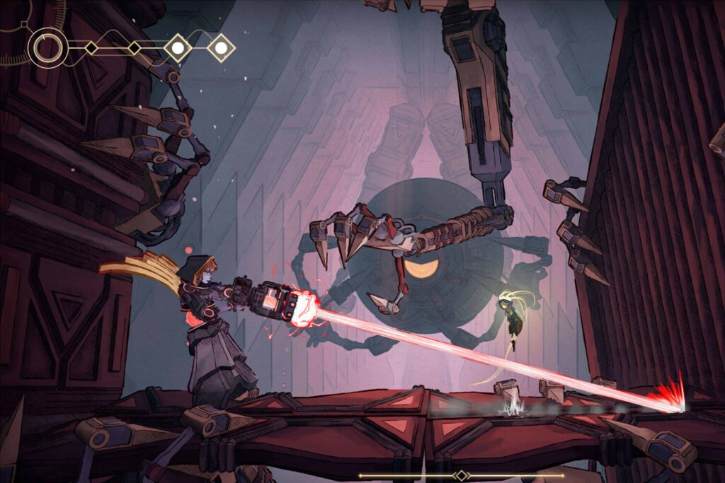 “Play as android MIO in this mesmerizing metroidvania where you explore the Vessel, an enormous technological ark overgrown with machines gone rogue. Uncover its secrets, enhance MIO’s abilities, and save the spaceship and its residents from oblivion.”