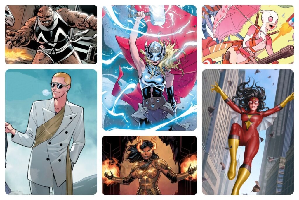 - Spider-Man → Spider-Gwen/Miles Morales/ Miguel O’Hara/ Spider-Man Noir/Spider-Punk