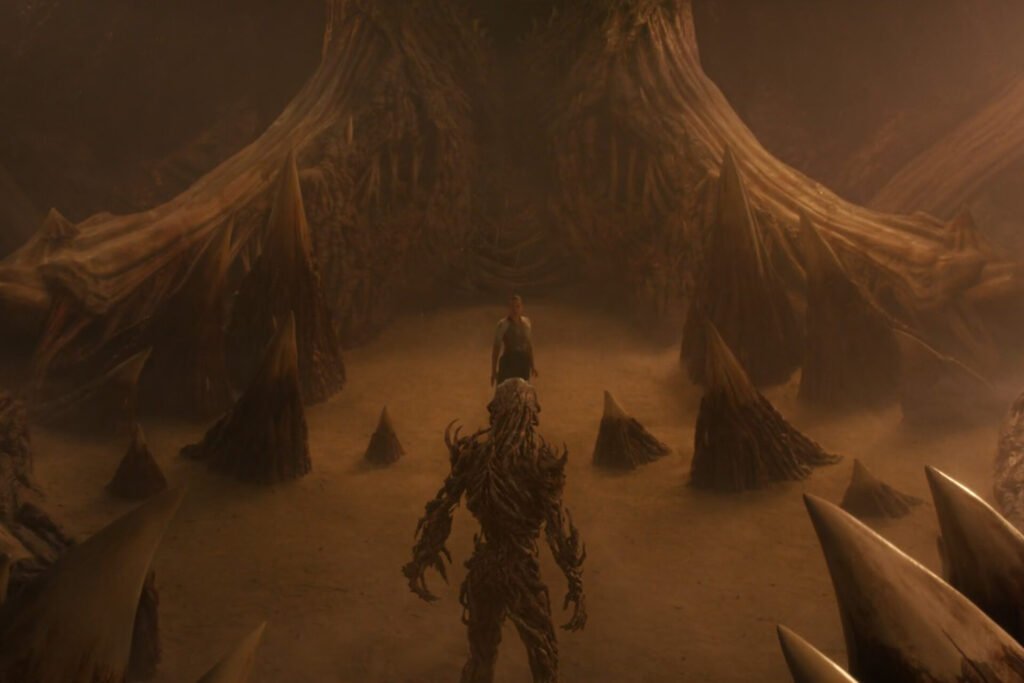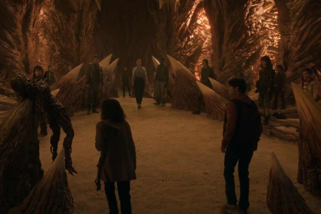 It looks as if Henry is about to overpower Eleven and gain the upper hand when Will’s manifested mind powers stop Vecna / Henry in his tracks. This distracts both Vecna / Henry and the Mind Flayer, giving Eleven enough time to drive a Mind Flayer spire through Vecna / Henry’s body, seemingly killing him.