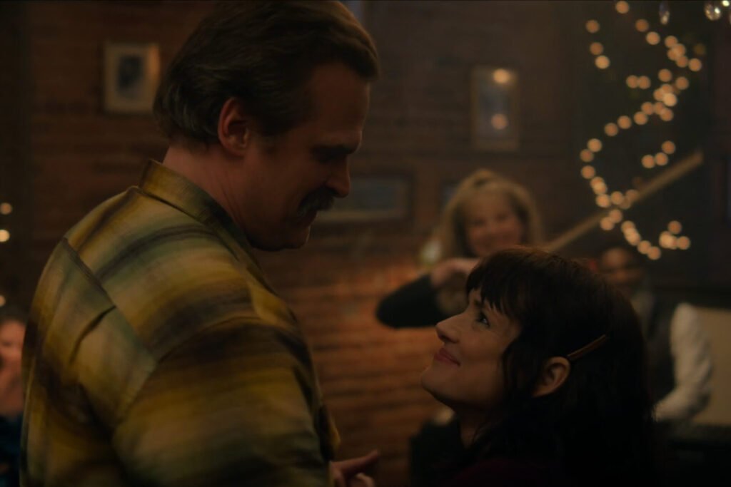 Hopper then cues some musicians playing in the restaurant and proposes to Joyce. The scene concludes with the happy couple dancing, indicating a bright and peaceful future for Joyce (and Hopper).
