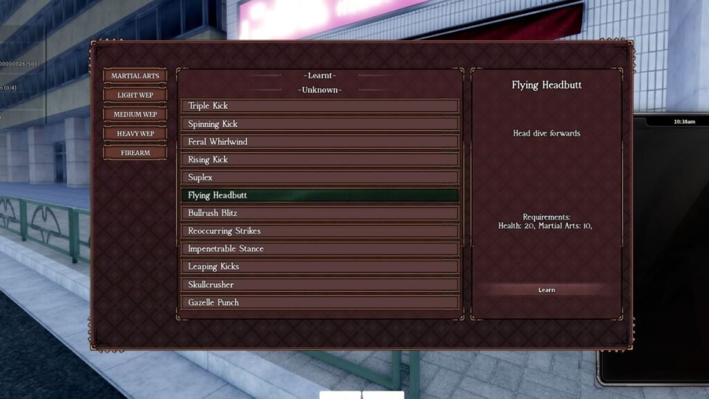 | Rising Kick | Launch the enemy into the air with upward kicks | Speed 15, Strength 15, Martial Arts 15 |