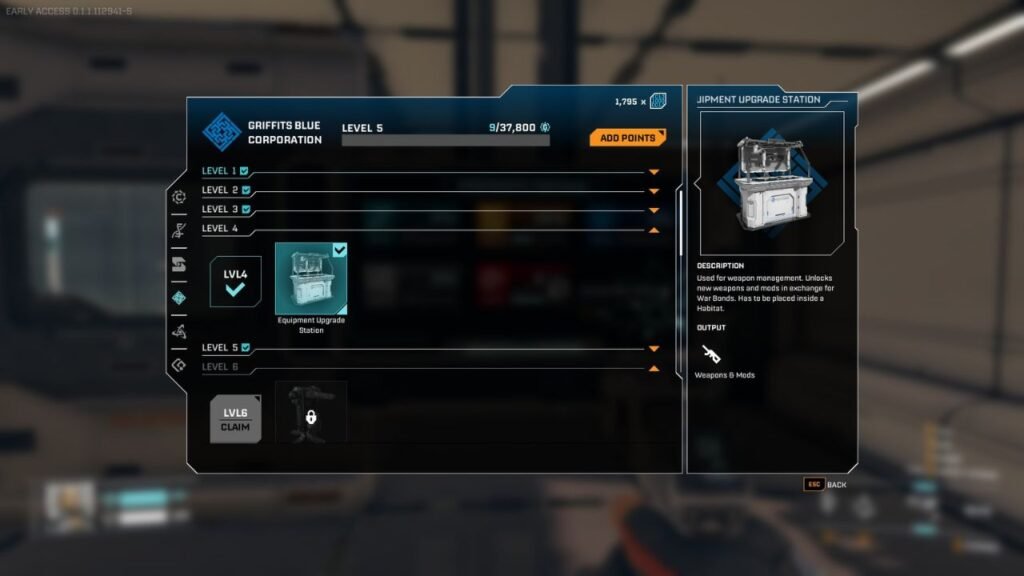 After delivering the required materials, such as Titanium Sheets or Wolfram Plates to raise your trust level to 4, head to the Corporate Terminal and claim your reward: the Equipment Upgrade Station.