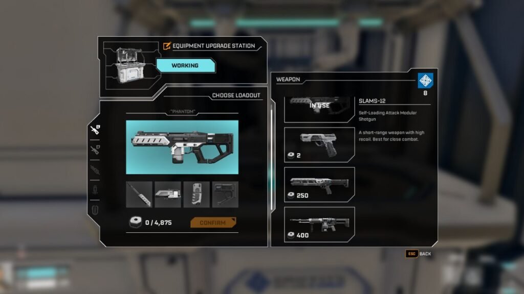 To unlock the AR, Shotgun, and Machine Gun, head to your Equipment Upgrade Station and click on the weapon slot. A new window on the right will show the available weapons.