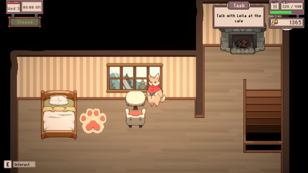 Tailside looks and feels like a classic cosy cafe sim. The art style leans into a slightly retro feel, without looking rough or too pixelated. The color palette is a charming and subtle mix of earthy tones from forest green to creamy off-white and coffee bean brown. There is often nothing more off-putting than a cozy game that feels like an attack on the eyeballs. Instead, Tailside offers softness and warmth.