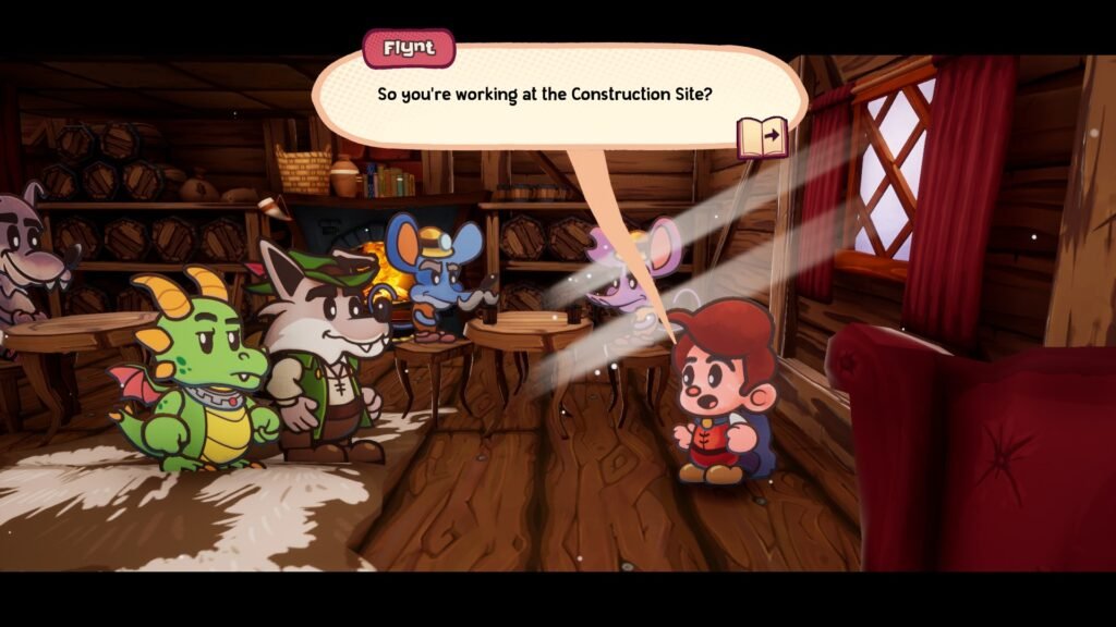 To kick things off, we find Flynt, who is about to face off against his nemesis, Tinder the Dragon, at his castle. However, as he enters, he’s met by a receptionist and finds a lot of modern corporate appliances and furniture, which leaves him a little dumbfounded. On top of that, Flynt can’t find Tinder anywhere.