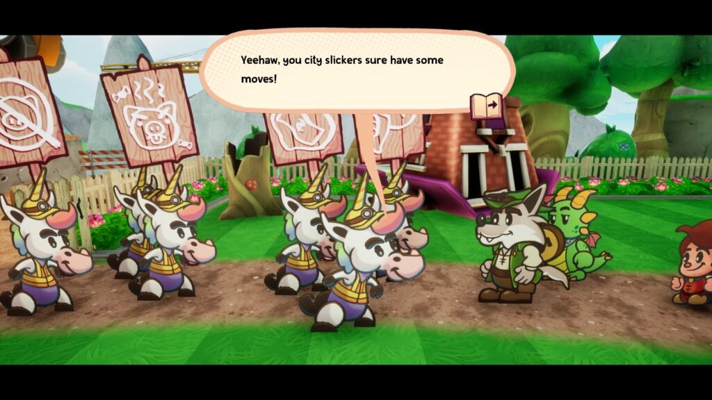 While I may not have played Paper Mario itself, watching streamers play the game did put me in awe of its art style, combination of platforming, puzzle-solving, and combat. It made me very excited to play Escape from Never After, which did not disappoint in its vibrant graphics, colorful cast of characters, addictive gameplay, and its hilariously corporate spin on classic fairytale stories.