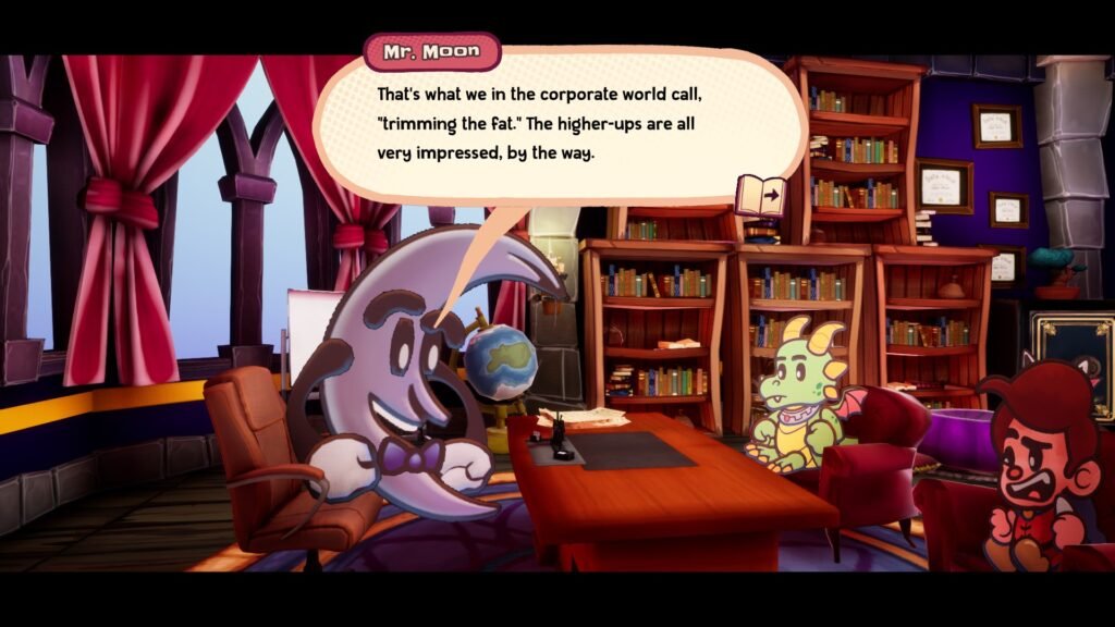 That said, one of the game’s most interesting aspects for me is how it weaves themes of capitalism and exploitation. From Ever After Inc’s relentless monetization of storybook worlds to the depiction of overworked magical creatures navigating office politics, the game cleverly satirizes how profit-driven systems can disrupt creativity, friendship, and, of course, morality.