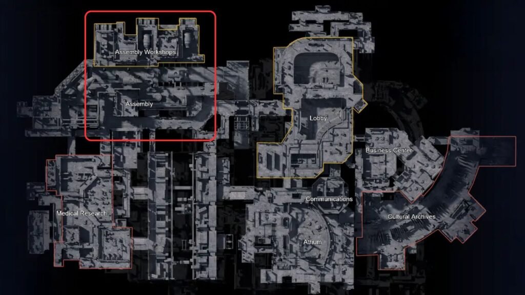 Check both inside rooms and outside areas in Assembly. Don’t forget to search the offices on both floors of Assembly Workshops.