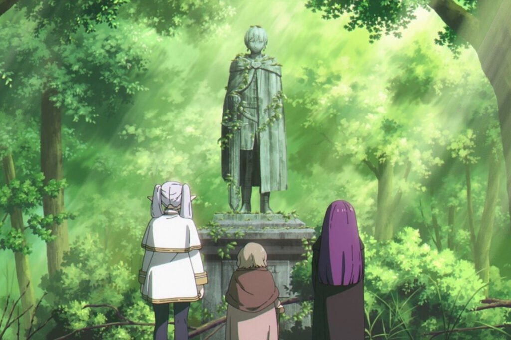 Throughout season one, we learn, through Frieren’s flashbacks along her journey, of her regret for not taking the opportunity to get to know Himmel better. She sees Himmel in the statues erected for her, taking on quests with rewards to be paid off far into the future, and, of course, the famous mirrored-lotus ring Himmel gave to Frieren, in which he got down on one knee and proposed to her with it, an act Frieren didn’t realize was part of human customs.