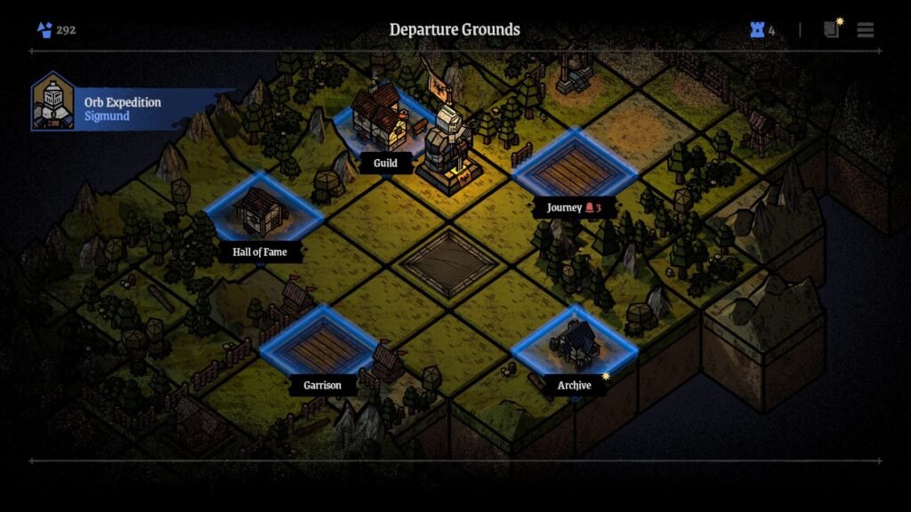 The left side of the Grounds hides the Garrison, the game’s main form of meta-progression. You can construct four buildings out of the five possible ones here. Your options are:
