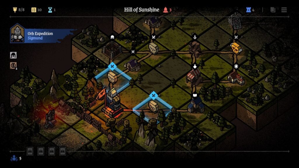 You’ll also lose if you run out of pieces, aka Mercenaries, before you destroy the enemy. After winning a battle, you’ll get to choose your next destination, and there are a ton of options: