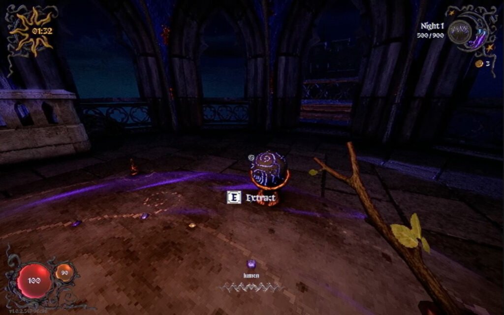 When outside, take a look around, and hopefully you’ll see a sparkly purple tower in the distance. This is the Extraction Tower. If you don’t see it when going outside, don’t worry, you’ll end up outside again, and eventually you’ll see the tower.