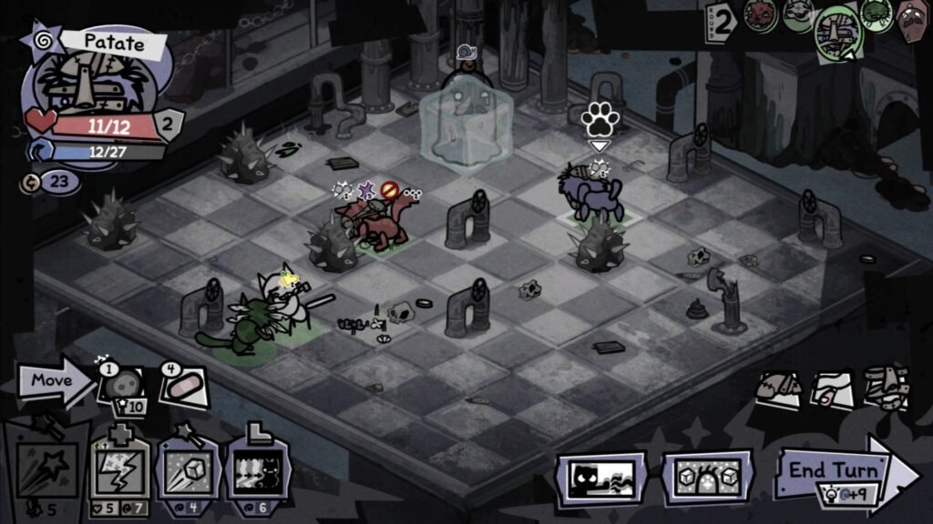 I was able to stop Flushmaster from using the Flush move nearly every round by having my Mage cat use a spell that turned them into an ice block. This disrupts Flushmaster’s entire turn, and they are unable to use Flush until their next turn.