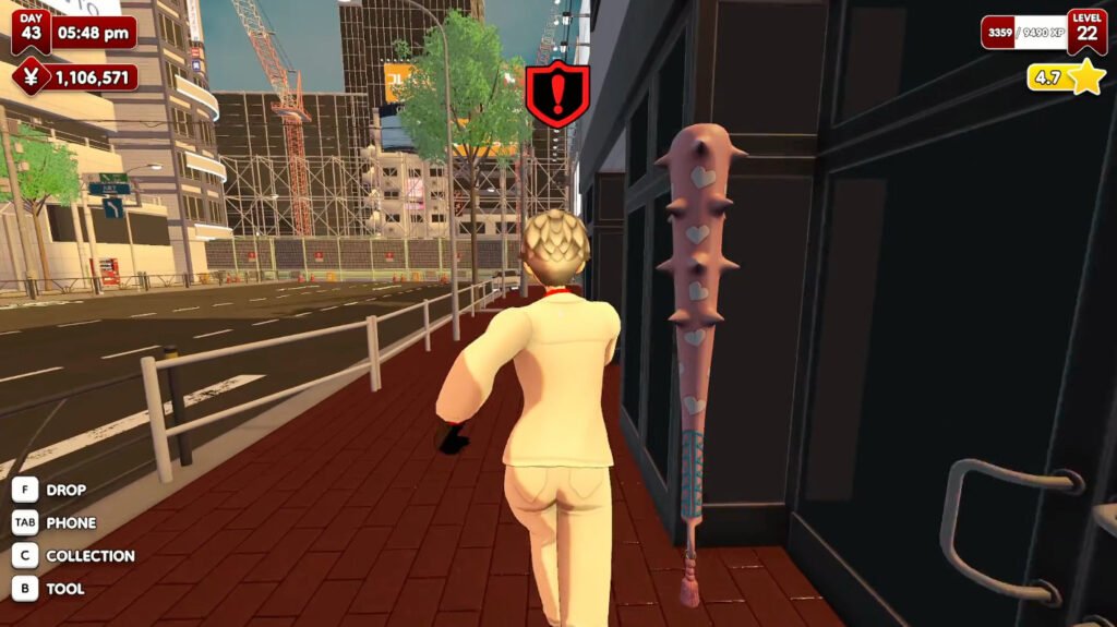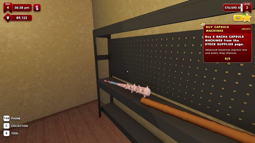 Additionally, picking up the bat to scare away the yakuza or using the bamboo stick to fix your gacha machines is quite a hassle as well. You’d have to pick them up in the storage room, and when you drop those items, they automatically return to the storage room instead of dropping them on the floor.