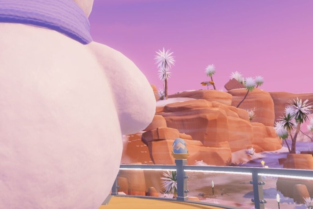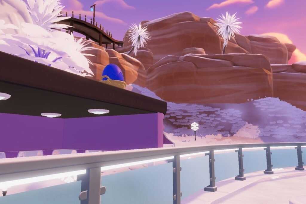 Present where the Orange Cracked Egg was found, move behind the Igloo’s entrance to find the final egg sitting atop one of the rock formations beneath the boardwalk.