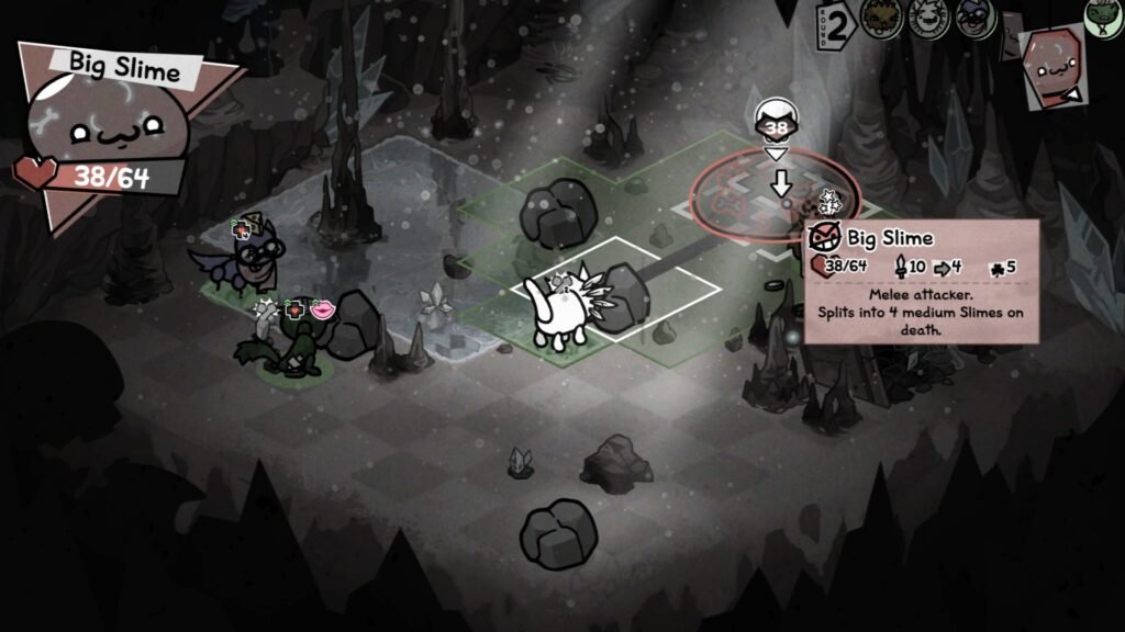 One of the mini-bosses you can come across in The Caves is Big Slime. Just as the name entails, he’s a big slime, but he’s secretly holding medium and smaller slimes inside of him. The number of enemies can get quite overwhelming, so to help you out, here are some tricks to beating Big Slime in Mewgenics.