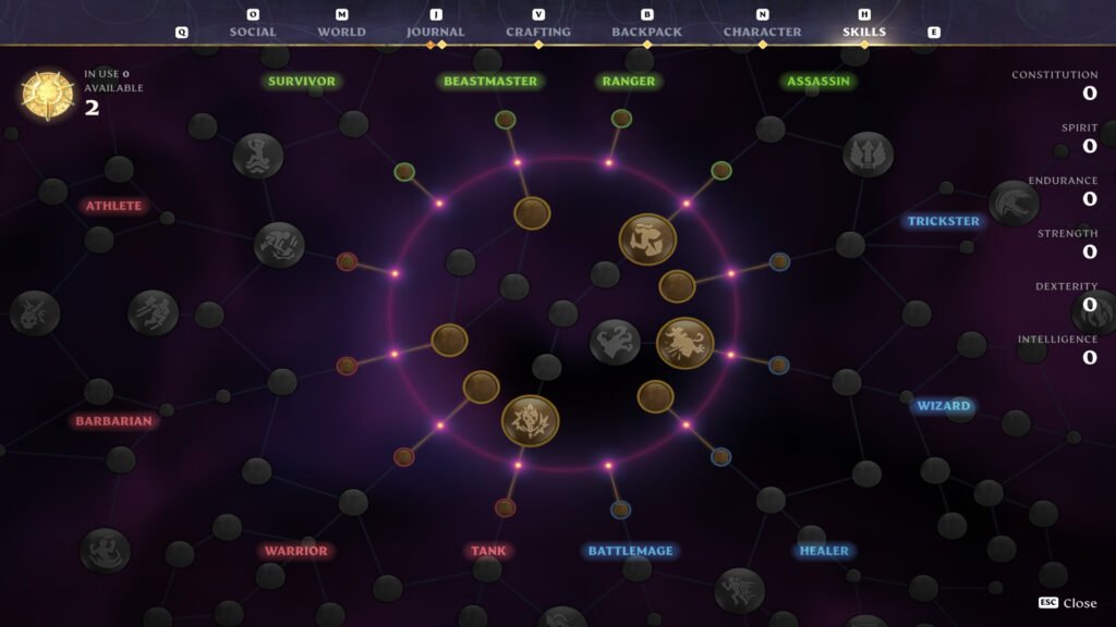 Anyone with any knowledge of games like Baldur’s Gate or Dungeons and Dragons will feel at home with the archetypes and stats set out within the skills in the game.