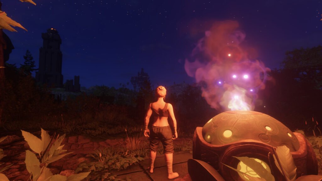 The world of Embervale is visually very pretty, and the graphics are extremely pleasant. There’s striking glowing fogs against beige ruins and rolling greens, and the lighting is a standout feature, creating an almost painting-like scene.