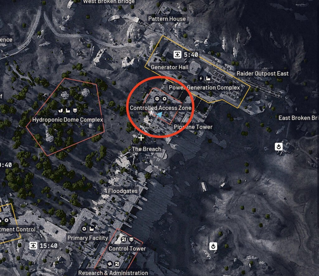 Finding the Controlled Access Zone is pretty simple. If you look on your map, it is right underneath the Power Generation Complex. However, there are a couple of ways to enter this new location that you might want to think about when making your trip. There is an access zone on top that has you taking a ladder to reach the very top of the zone. Or, you can take and alternate route and go through the door way to access the bottom of the zone.