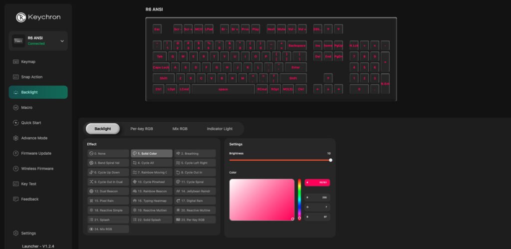 The Keychron Launcher web app gives you an idea of how much the Keychron R6 QMK Wireless Mechanical Keyboard is capable of. You’re able to control just about anything, including remapping certain keys, adding shortcuts, and even adding sound effects.