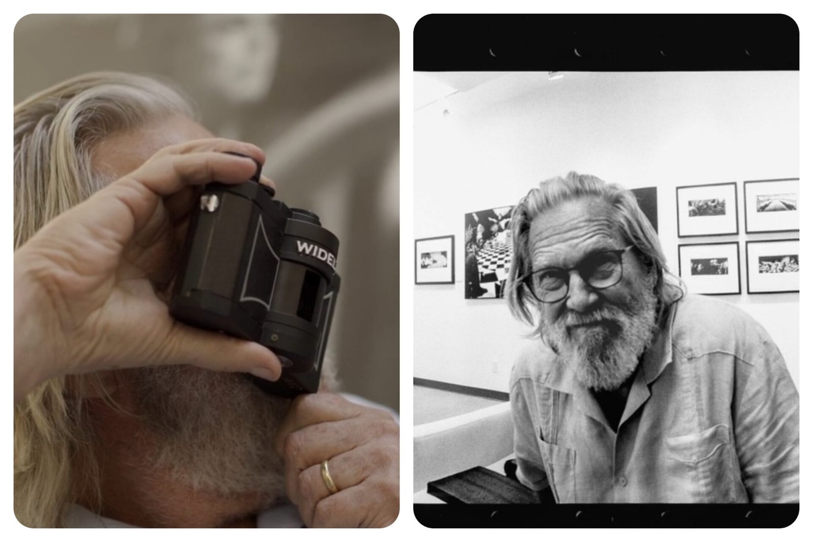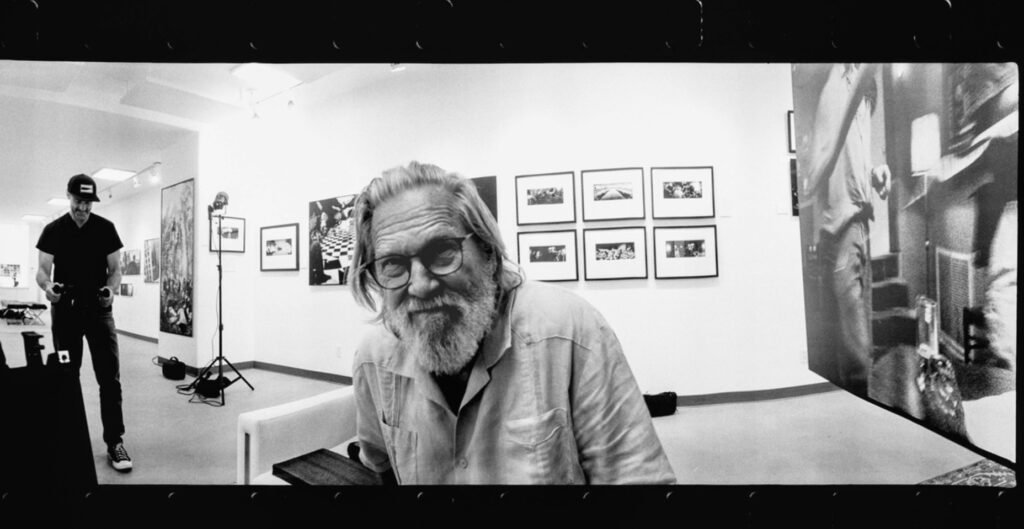 Photographers including filmmakers like Stanley Kubrick experimented with Widelux panoramas, but its best‑known advocate is Jeff Bridges, who began using one in the 1980s to shoot behind‑the‑scenes life on sets and later published a book of those images.