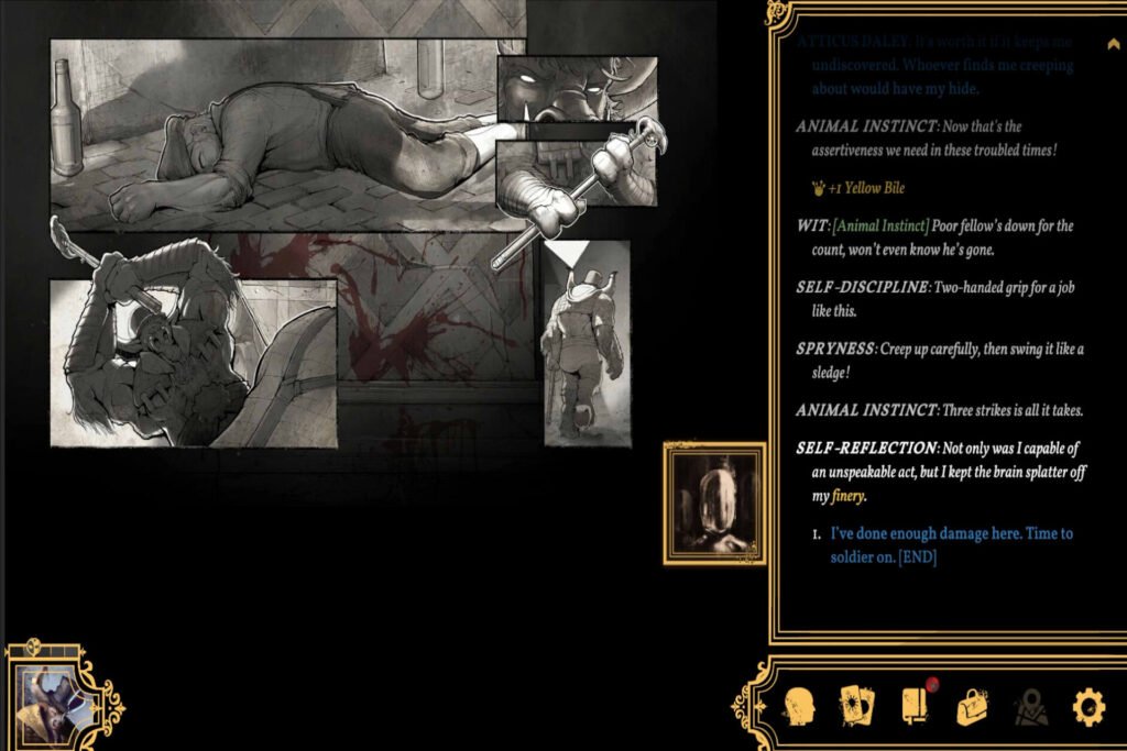Perhaps the thing I love most about the game, other than the story, of course, is the striking artwork. Character portraits carry that painterly, high-detailed style reminiscent of official DND or TTRPG sourcebook illustrations. Comic-like pop-ups also occur during certain interactions/events such as fights, adding some energy and strong visual flair into what can otherwise be quite static moments.
