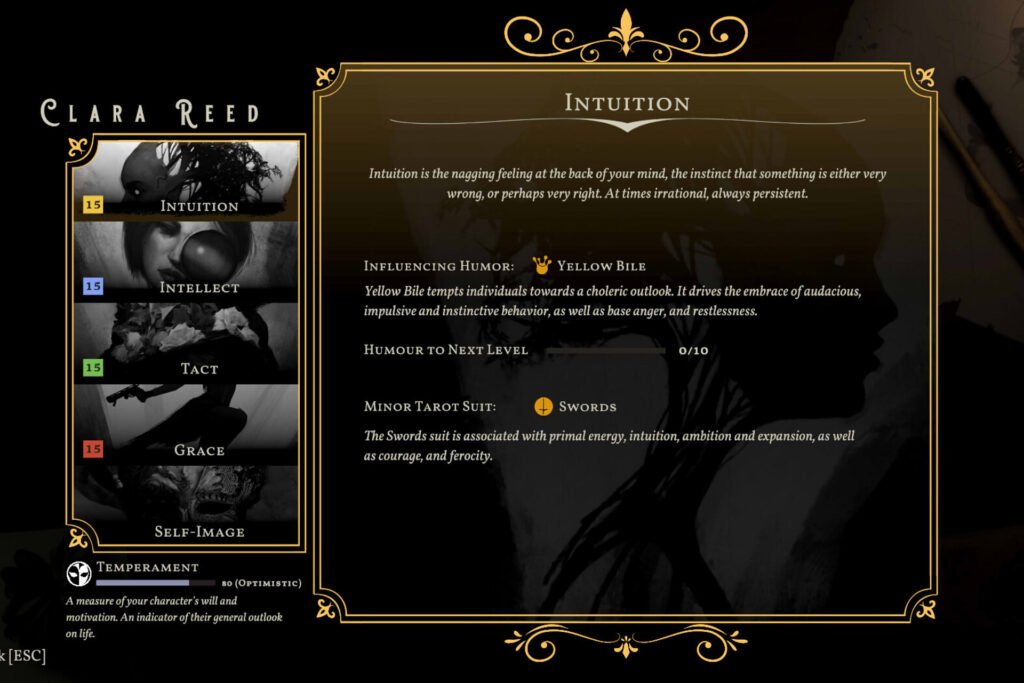 Sovereign Syndicate’s strongest asset is the unique tarot-based system, which is influenced by each character’s array of stats and traits. Rather than rolling a die, players draw from a deck of tarot cards to determine if they succeed or fail in their approach. Of course, there is also a card for an auto-success, and an auto-failure, too, much like that of a Natural 20 or Natural 1 in DND-inspired CRPGs.