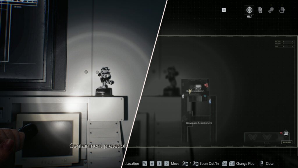 When you take control of Grace again, you will need to explore the facility and find a way to open several doors. When you’ve reached Bioweapon Repository 5, which is filled with Lickers and Zombies, you can take the stairs up to the Operations Room. Finally, we have the last Mr. Raccoon, tucked away in the Operations Room near the computer on the south wall of the room.