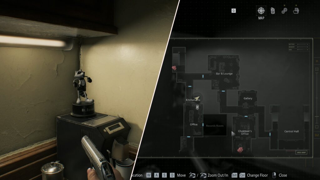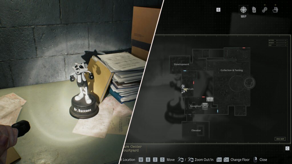The final Mr. Raccoon that you can find in the West Wing will need to be found by Leon. When you’ve taken control of Leon once again, after Grace has left for the Basement, you can make your way to the Records Room. There will be a Warped Closet that you’ll need to break open, with an elusive Mr. Raccoon dancing away inside.