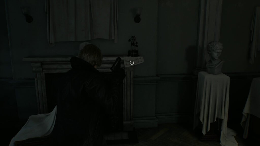 First found when you are playing Leon in the Care Center, after you take down the first wave of zombies as Leon, you can find this first figure on the mantle above the fireplace. There will be a note under the figure stating “Hunt us, seek us! Find us, break us!”