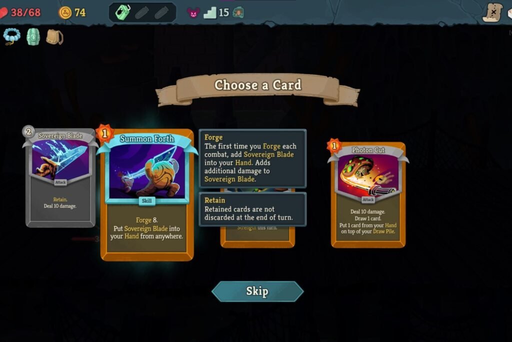 Cards like Bulwark and The Smith grant you a specific amount of Forge and generate the Sovereign Blade. The more stacked your Forge is, the greater the damage dealt with the blade. Combine its power with debuffs and Strength, and your damage will be in three digits.