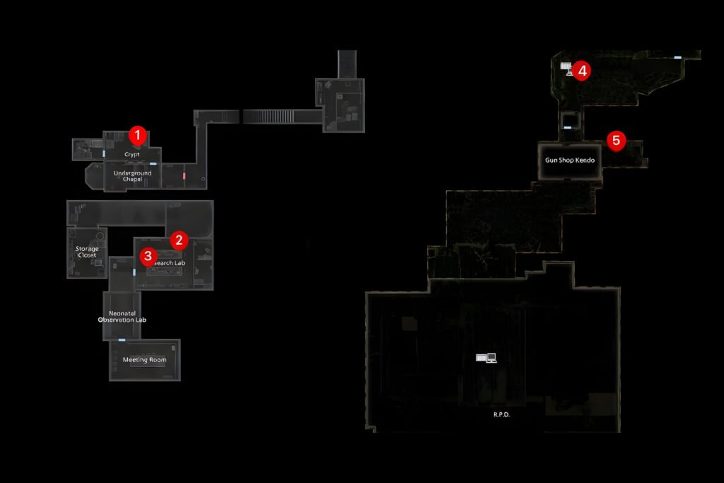 - Library Card: Inside Wesker’s desk drawer.